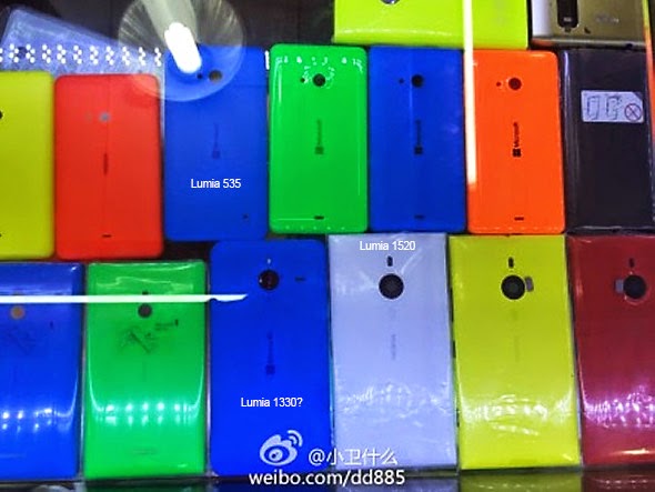The new Microsoft Lumia 535 and Lumia 1330 smartphones where spotted among other Lumia handsets in a Nokia shop and posted to Chinese microblogging site Sina Weibo and a Windows blog.