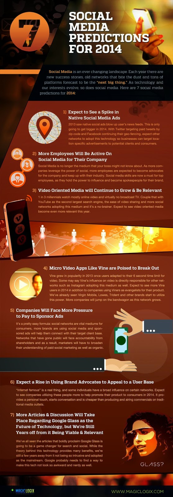 As the year 2014 comes to a close, let us take a look at some of the predictions made for 2014 concerning the'technology industry'' and see if they came out right. This infograhic above was created by magiclogix and predicted, among other things, that more articles and discussions will center around Google Glass but consumers won't be interested in the search giant's smart eyewear. Did their prediction came to pass or not?