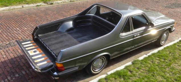 As you can see it's a 1979 Mercedes-Benz 300TD-El Camino and was converted into a pickup by the Bill's Auto & Body in Wisconsin using a "1980's era" Chevrolet El Camino bed, rear window, and trim in the 80s. The young-old lady is for sale on eBay right now. The current bid for the car stands at $3,850.
