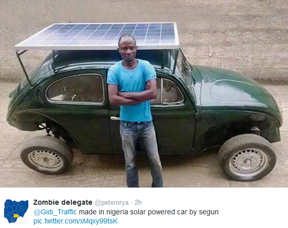 This lovely car you see on the screen was built by a Nigerian named Oyeyiola Segun, a part 5 student of Electronic and Electrical engineering at OAU(Obafemi Awolowo University). Segun, in an interview, said he built the car all by himself and that, the car depend on both Wind and Solar energy to run.