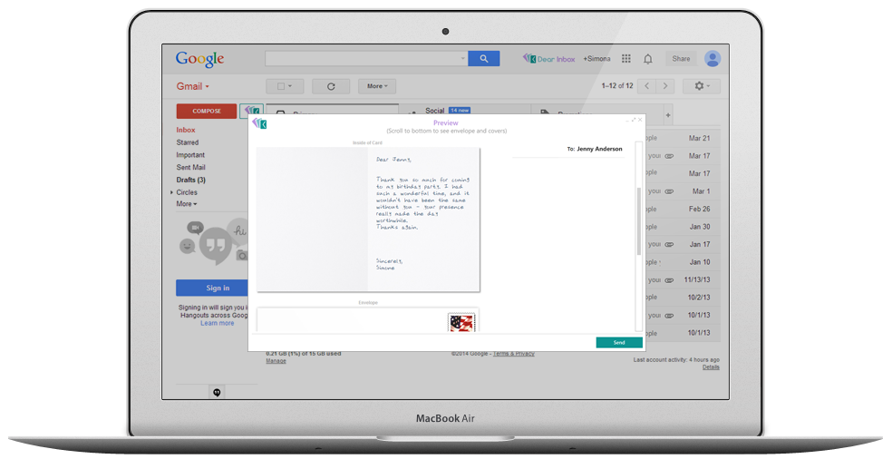 This Gmail plug-in lets you Send real printed greetings cards to your family(No joking here)