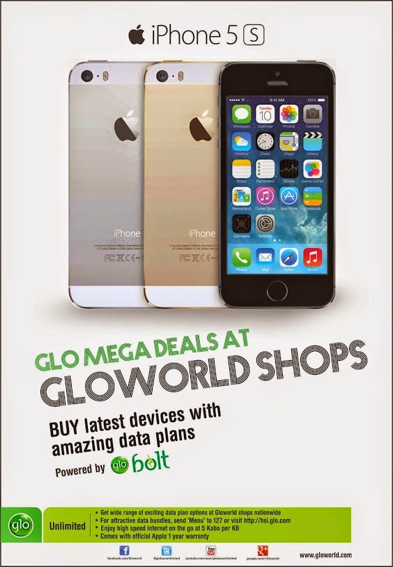 Exciting data bundles available with the iPhone 5S at Gloworld shops nationwide.