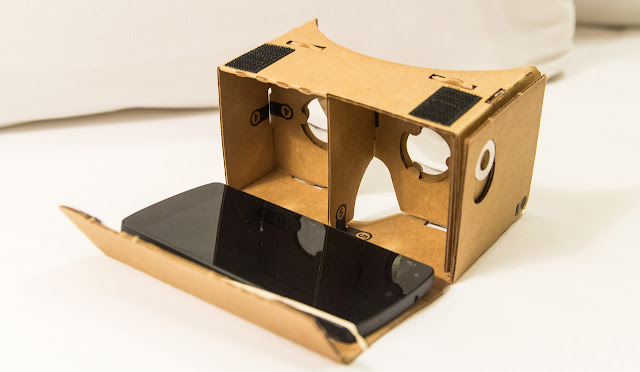 Google CardBoard is a Do-it-yourself(DIY) kit with lenses that anyone can build, fit in their smarphones to experience virtual reality, such as visiting new places, play games etc as if they were there without being there.