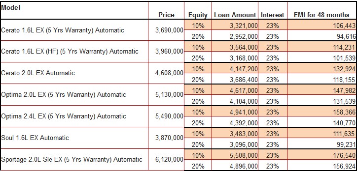 Sequel to the above, our sole aim is to drive sales for Kia vehicle by encouraging potential investors to get Kia instead of competition based on its affordability, access to loan with highly competitive edge like 10% equity contribution, fuel economy, low maintenance cost and other USPs for Kia brand.